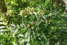 珊瑚樱是茄科茄属植物。株高达2米;植株无毛;叶窄长圆形或披针形,长1-6厘米,基部窄楔形下延,全缘或波状,侧脉4-7对;叶柄长2-5毫米;花单生,稀双生或成短总状花序与叶对生或腋外生,…全部>>