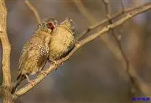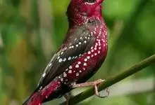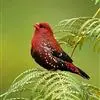 红梅花雀小型鸟类,体长9-10厘米。雄鸟通体朱红色,背、肩、胸等满布白色小斑点,两翅和尾黑褐色均具白色端斑,嘴红色,脚蜡黄色。雌鸟上体淡褐色或赭褐色,翅上中覆羽、大覆羽和内侧飞羽末端具白色斑点,…全部>>