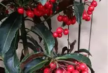 朱砂根是报春花科紫金牛属植物,又名铁凉伞、红铜盘、百两金、大罗伞、开喉箭等,为常绿小灌木,高1~2米,茎粗壮,无毛,除侧生特殊花枝外,无分枝,叶片革质或坚纸质,椭圆形、椭圆状披针形至倒披针形,…全部>>