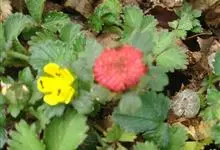 蛇莓 Teschem.),别名三爪凤、龙吐珠、东方草莓等,为蔷薇科蛇莓属的多年生草本植物。其根茎短,粗壮;匍匐茎多数;小叶片倒卵形至菱状长圆形;托叶窄卵形至宽披针形;花单生于叶腋,花瓣倒卵形,…全部>>