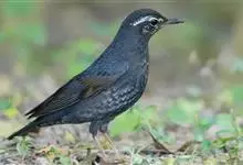 白眉地鸫是鸫科、地鸫属中型鸟类,体长21-24厘米。雄鸟通体暗蓝灰色或黑灰色,腹中部和尾下覆羽白色具长而粗著的白色眉纹,尾亦为黑灰或蓝灰色,外侧尾羽具宽的白色尖端。雌鸟上体橄榄褐色,下体皮黄白色,…全部>>