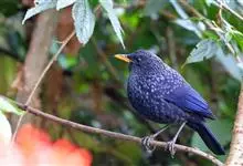 紫啸鸫是雀形目鹟科啸鸫属鸟类,又称黑雀儿,山鸣鸡、乌精。成鸟眼先及颏绒黑色;前额、头顶至背及肩羽和颈侧呈深紫蓝色,羽端具较密集的亮蓝色点斑;腰至尾上覆羽的深紫蓝色较暗而杂黑褐色,…全部>>
