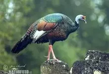 眼斑吐绶鸡:是火鸡科的两种鸟类之一。体型比普通火鸡略小些,体长1米左右,体重2.4-5.4千克,雄性比雌性略大,长得很特别,蓝色的秃脑袋上冒出几个橙黄色的疙瘩。但是它羽色艳丽,身体呈铜色及绿色。…全部>>