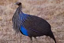 鹫珠鸡:是珠鸡科中体形最大的一种,因头颈部像兀鹫而得名。雌雄羽色相似,为黑色基底上遍布白色点斑,如同珍珠。以各种植物的种子和小型动物为食。走禽。体结实,喙短,呈圆锥形,适于啄食植物种子;脚强健,具锐爪,…全部>>