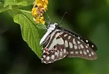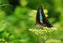 青带凤蝶Graphium sarpedon ,又名青凤蝶,是最普遍的中型凤蝶,飞行速度很快。青带凤蝶的翅膀中央有许多浅蓝色的斑点,很整齐地排列成一条直线。这些斑点由上而下逐渐变大,就像一条青色的带子。全部>>