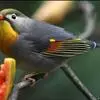 银耳相思鸟小型鸟类,体长14~18厘米。头顶黑色,耳羽银灰色,前额橙黄色;外侧飞羽橙黄色,基部朱红色,极为鲜艳、醒目。尾圆形,尾上、尾下覆羽朱红色,尾暗灰褐色,外侧尾羽橙黄色,其余上体橄榄绿或橄榄黄色。…全部>>