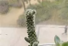 玉翁是仙人掌科、乳突球属多年生草本多浆植物。植株幼时呈扁球形或球形,以后长成圆筒状,直径10厘米左右,淡绿色。疣状突起呈圆锥形,新刺座的白色绵毛很短,疣突腋部则有20根白色长绵毛,绵毛长4厘米左右,…全部>>