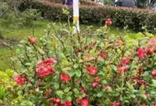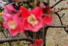 贴梗海棠Nakai)是蔷薇科、木瓜海棠属植物。落叶灌木,高达2米,枝条直立开展,有刺。叶片卵形至椭圆形,稀长椭圆形,长3-9厘米,宽1.5-5厘米。花先叶开放,3-5朵簇生于二年生老枝上。…全部>>