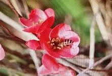 贴梗海棠 Nakai)是蔷薇科、木瓜海棠属植物。落叶灌木,高达2米,枝条直立开展,有刺。叶片卵形至椭圆形,稀长椭圆形,长3-9厘米,宽1.5-5厘米。花先叶开放,3-5朵簇生于二年生老枝上。…全部>>