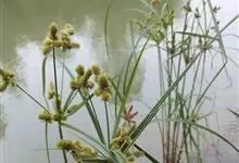 纸莎草是莎草科、莎草属的植物,具有粗壮的根状茎,高达2-3米,茎秆簇生,粗壮,直立,钝三棱形。叶退化呈鞘状,茎秆顶端着生总苞片,呈伞状簇生,总苞片叶状,披针形,顶生花序伞梗极多,细长下垂。瘦果灰褐色,…全部>>