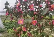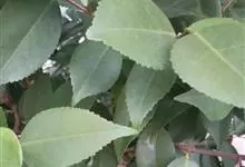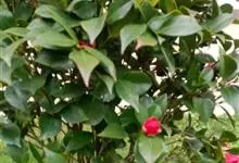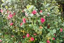滇山茶:灌木至小乔木,有时高达15米,嫩枝无毛。叶阔椭圆形,上面干后深绿色,发亮,下面深褐色,无毛,侧脉6-7对,边缘有细锯齿。花顶生,红色,直径10厘米,无柄;苞片及萼片10-11片,花瓣红色,…全部>>