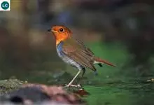 日本歌鸲:体型小似麻雀,但羽毛颜色较为美丽。嘴细长,嘴须不发达;翅短圆,上体草黄褐;雄鸟喉部橙棕色,十分明显,雌鸟却转为淡橙黄色。第一枚初级飞羽短狭;尾长约为跗蹠长度的二倍;跗蹠黑褐色,形粗长而健。…全部>>