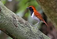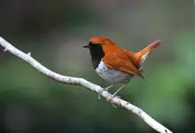 琉球歌鸲是鹟科、歌鸲属小型鸟类,体长约14厘米。雄鸟上体暗橙色,颏、喉、胸黑色。其余下体白色。雌鸟亦为橙色,颏、喉白色,其余下体污白色而缀有灰色。嘴峰黑褐色或褐色,脚肉色或肉黄色。…全部>>