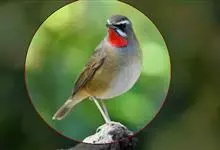 红点颏:是鸟纲、鹟科的鸣禽。又名西伯利亚歌鸲。体长14-17厘米,体重16-27克。雄鸟头部、上体主要为橄榄褐色。眉纹白色。颏部、喉部红色,周围有黑色狭纹。胸部灰色,腹部白色。雌鸟颏部、喉部不呈赤红色,…全部>>