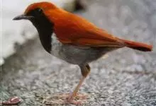 琉球歌鸲是鹟科、歌鸲属小型鸟类,体长约14厘米。雄鸟上体暗橙色,颏、喉、胸黑色。其余下体白色。雌鸟亦为橙色,颏、喉白色,其余下体污白色而缀有灰色。嘴峰黑褐色或褐色,脚肉色或肉黄色。…全部>>