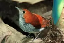 琉球歌鸲是鹟科、歌鸲属小型鸟类,体长约14厘米。雄鸟上体暗橙色,颏、喉、胸黑色。其余下体白色。雌鸟亦为橙色,颏、喉白色,其余下体污白色而缀有灰色。嘴峰黑褐色或褐色,脚肉色或肉黄色。…全部>>