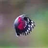 红翅旋壁雀:体重15-23克,体长120-178毫米。是一种体型略小的鸟类。尾短而嘴长,翼具醒目的绯红色斑纹。飞羽黑色,外侧尾羽羽端白色显著,初级飞羽两排白色点斑飞行时成带状。繁殖期雄鸟脸及喉黑色,…全部>>