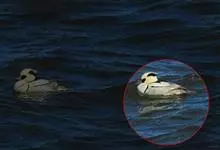 斑脸海番鸭(奇嘴鸭、海番鸭)雁形目 > 鸭科 > 海番鸭属 > 斑脸海番鸭