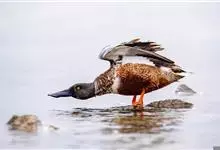 琵嘴鸭:属中型鸭类,个体比绿头鸭稍小,体长43-51厘米,体重0.5千克左右。雄鸭头至上颈暗绿色而具光泽,背黑色,背的两边以及外侧肩羽和胸白色,且连成一体,翼镜金属绿色,腹和两胁栗色,脚橙红色,嘴黑色,…全部>>