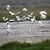 白鹭:白鹭属共有13种鸟类,其中有大白鹭、中白鹭、小白鹭,黄嘴白鹭四种,体羽皆是全白,均称为“白鹭”。这4种白鹭均是中等体型的白色鹭。与牛背鹭的区别在体型较大而纤瘦,嘴及腿黑色,趾黄色,繁殖羽纯白,…全部>>
