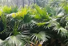 琼棕:又名陈棕,濒危种。常绿丛生灌木至小乔木状,高3至8米,茎直立、粗壮,直径4至8厘米。叶掌状深裂,裂片14-16片,线形,不分裂或2浅裂,中脉上面凹陷,背面凸起。花序腋生,多分枝,…全部>>