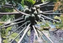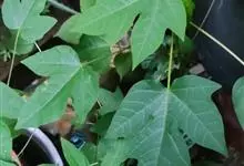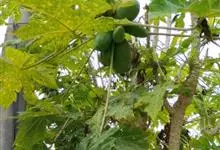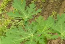 番木瓜,番木瓜科番木瓜属的常绿软木质小乔木,高达10米,具有乳汁;茎不分枝或有时于损伤处分枝;叶大且聚生于茎顶,近似盾形,叶柄中空;花单性或两性,有些品种雄株偶尔生两性花或雌花,…全部>>