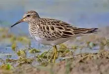 斑胸滨鹬小中型涉禽;体长23厘米,翼展37-45厘米,体重126克。嘴形直,有时微向上或向下弯曲;鼻沟长度远超过上嘴的1/2;羽色暗淡,雌雄羽色及大小大都相同;跗蹠后侧具盾状鳞,…全部>>
