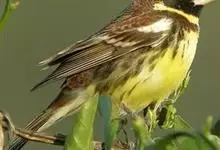 黄胸鹀是雀形目雀科鹀属鸟类,又名黄胆、禾花雀。雄鸟额、头顶、颏、喉黑色;头顶和上体栗色或栗红色;尾黑褐色,外侧两对尾羽具长的楔状白班;两翅黑褐色,翅上具一窄的白色横带和一宽的白色翅斑;下体鲜黄色,…全部>>