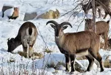 岩羊是偶蹄目牛科岩羊属哺乳动物。颜色与岩石相像,两性皆具角,雄羊角大而弯曲,角外表具不明显的横棱且体壮实,雌羊角短小;头较小,眼大,耳小,颏下无须;体背面为棕灰或石板灰色略有蓝色反光,…全部>>