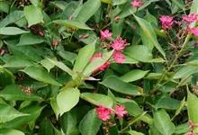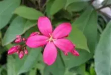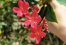 变叶珊瑚花,是大戟科麻风树属常绿灌木。变叶珊瑚花单叶互生,倒阔披针形,叶面为浓绿色,叶背为紫绿色,叶柄具茸毛,叶面平滑,常丛生于枝条顶端;花单性,雌雄同株,花冠红色或粉红色,雌、雄花不同时开放;具乳汁,…全部>>