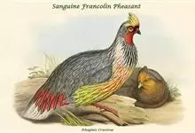 血雉雉科血雉属鸟类,别名血鸡、松花鸡,血雉的雄鸟大覆羽、尾下覆羽、尾上覆羽、脚、头侧、腊膜为红色,故称血雉。其别名甚多,各地皆异。在甘肃,因其胸侧和翅上覆羽沾绿,被称为“绿鸡”;因其羽毛形似柳叶,…全部>>