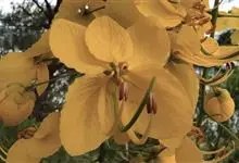 腊肠树:是豆科腊肠树属植物。落叶乔木,高可达15米;枝细长;树皮灰色,老时粗糙,暗褐色。叶长30-40厘米,小叶对生,薄革质,阔卵形,卵形或长圆形,边全缘,幼嫩时两面被微柔毛,老时无毛;叶脉纤细,…全部>>