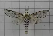 多斑豹蠹蛾,学名是Zeuzera multistrigata,木蠹蛾科豹蠹蛾属的一个物种。多斑豹蠹蛾的成虫灰白色,体长29毫米,翅展55~61毫米。头、胸部都密被灰色短毛。全部>>