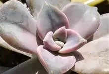 景天科风车草属的多肉植物,原产于墨西哥。株形和风车草属胧月极为相似。花瓣被蜡,叶排成延长的莲座状被白粉。平时为绿色日照充足时叶色朱红带褐色,叶呈瓜子型叶末较尖,开黄色小花,星状。全部>>