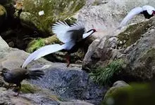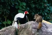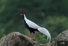 白鹇,是鸡形目雉科鹇属的一种留鸟。雄鸟上体白色并具黑色纹,下体黑色,头顶具黑色长羽冠,尾白而长;雌鸟体型较小,以橄榄褐色为主,下体具白色或皮黄色细纹;虹膜褐色,眼周具红色裸皮,喙黄色,脚鲜红色。…全部>>