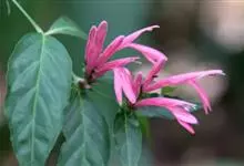 红唇花)是一种爵床科,虾衣花属植物,常绿蔓状半灌木。因长得很像嘴唇而得名。原产巴西东部,花序生长在叶腋处,能呈现再枝条上成串开花的景象。开花期全年,桃红色的花朵,…全部>>