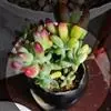 乙女心是景天科景天属的多肉植物,原产墨西哥。多年生亚灌木,茎叶肉质,株高5-30厘米。叶片簇生于茎顶,圆柱状,淡绿色或淡灰蓝色,叶先端具红色,叶长3~4厘米。花小,黄色。春秋为生长季,…全部>>