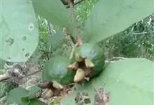 番石榴,别名芭乐、鸡屎果、喇叭番石榴等,为桃金娘科番石榴属的一种乔木植物。其叶片革质,长圆形至椭圆形;花单生或成聚伞花序;萼管钟形,有毛,萼帽近圆形,不规则裂开;花瓣白色;浆果球形、卵圆形或梨形,…全部>>
