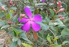 野牡丹:灌木,高0.5-1.5米,分枝多;茎钝四棱形或近圆柱形,毛扁平边缘流苏状。叶片坚纸质,卵形或广卵形,全缘,7基出脉,两面被糙伏毛及短柔毛。伞房花序生于分枝顶端,近头状,…全部>>