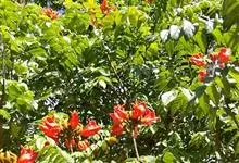 石榴花是石榴属植物的统称。石榴花有顶花、腋花之分,为有限伞房花序,花序的中心花首先发育,侧位花后发育,一个花序有1-9个花蕾不等。石榴花花萼红色或淡黄色,裂片略外展,卵状三角形,外面近顶端有绿色腺体,…全部>>