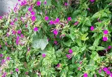 即紫茉莉,英文名:Four-o'clock,Marvel of Peru,为紫茉莉科、紫茉莉属多年生草本植物,一年生栽培。株高50~80cm。根粗壮,茎多分枝而散生。叶对生,卵形或心脏形。花数朵簇生…全部>>