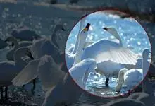 小天鹅为大型水禽,体长110~130厘米,体重4~7千克,雌鸟略小。它与大天鹅在体形上非常相似,同样是长长的脖颈,纯白的羽毛,黑色的脚和蹼,身体也只是稍稍小一些,颈部和嘴比大天鹅略短,但很难分辩。最…全部>>