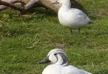 灰雁:体长70-90厘米,翼展147-182厘米,体重2.5-4千克,寿命17年。体大而肥胖。嘴、脚肉色,上体灰褐色,下体污白色,飞行时双翼拍打用力,振翅频率高。脖子较长。腿位于身体的中心支点,…全部>>