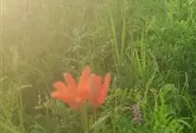 山丹是百合科百合属的多年生草本植物。鳞茎卵形或圆锥形,鳞片长圆形或长卵形,白色;叶散生茎中部,线形,边缘有乳头状突起;花单生或数朵成总状花序,花鲜红色,常无斑点,花被片反卷,…全部>>