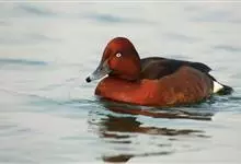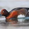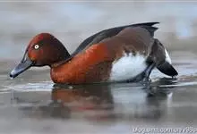 白眼潜鸭属中型潜鸭,个体比红头潜鸭小,和凤头潜鸭差不多。体长33-43厘米,体重0.5千克以上不到1千克。雄鸟头、颈、胸暗栗色,颈基部有一不明显的黑褐色领环;眼白色,上体暗褐色,上腹和尾下覆羽白色,…全部>>