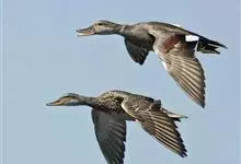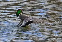 绿头鸭属游禽,大型鸭类。体长47-62厘米,体重大约1千克,外形大小和家鸭相似。雄鸟嘴黄绿色,脚橙黄色,头和颈辉绿色,颈部有一明显的白色领环。上体黑褐色,腰和尾上覆羽黑色,两对中央尾羽亦为黑色,且向…全部>>