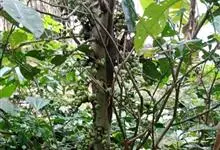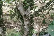 大果榕是桑科榕属的小乔木,株高可达10米;幼枝被柔毛;叶互生,宽卵状心形或近圆形;雄花无梗、匙形、花丝长,雌花生于雌株榕果内,子房白色;榕果簇生于树干基部或老茎短枝上、扁球形或陀螺形,…全部>>