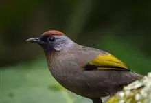 黑顶噪鹛:中型鸟类,体长24-26厘米。前额、脸、颏、喉黑色,头顶黑褐沾棕或深棕橄榄褐色,背栗褐或棕褐色,颧斑白色或棕红色,眼后缘和颈侧亦具白斑,飞羽金黄橄榄色而具蓝灰色尖端。下体淡棕褐色。…全部>>