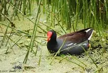 黑水鸡:是鹤形目、秧鸡科的鸟类,共有12个亚种。中型涉禽,体长24-35厘米。嘴长度适中,鼻孔狭长;头具额甲,后缘圆钝;嘴和额甲色彩鲜艳。翅圆形,第2枚初级飞羽最长,或第2枚和第3枚初级飞羽等长,…全部>>