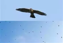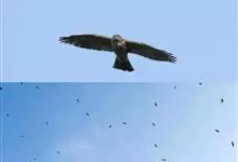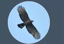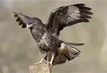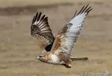 普通鵟:是鹰科、鵟属鸟类,属中型猛禽。体长54厘米,翼展122-137厘米,体重515-810克。体色变化较大,上体主要为暗褐色,下体主要为暗褐色或淡褐色,具深棕色横斑或纵纹,尾淡灰褐色,…全部>>